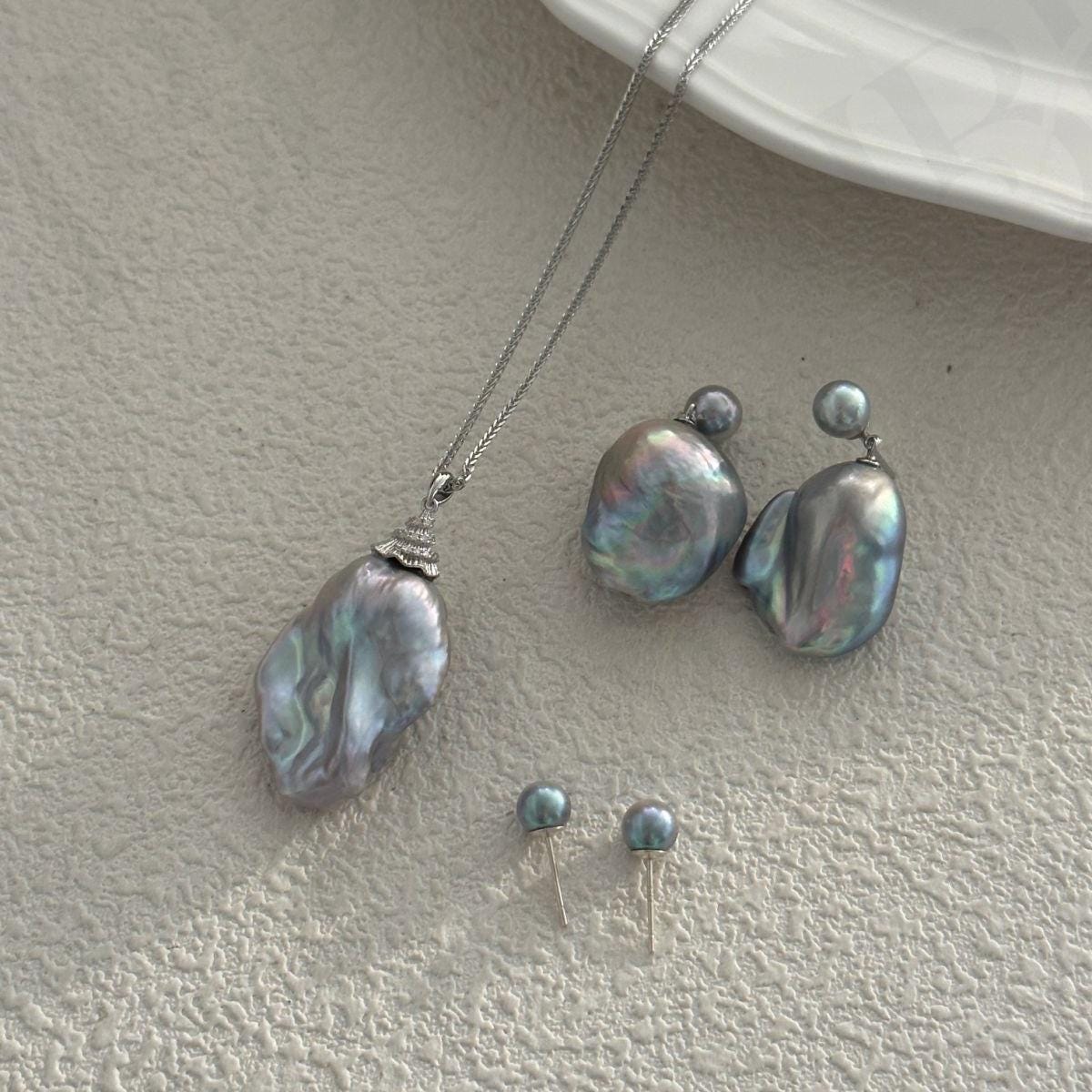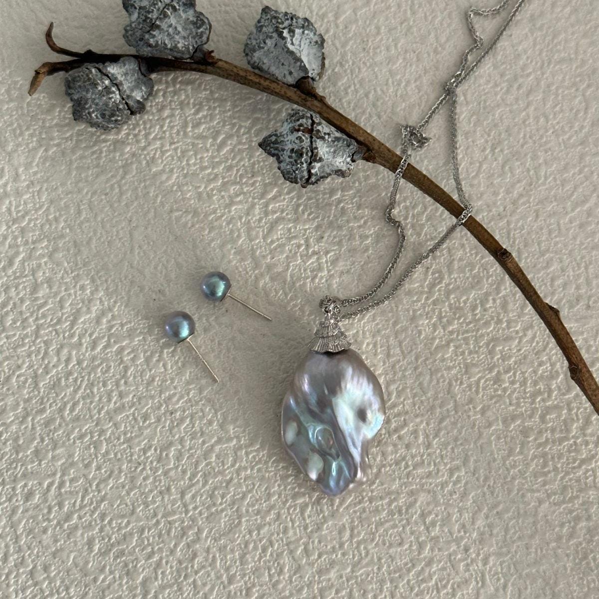 ✔ Pearl Type: Genuine Large Baroque Freshwater Pearl with a stunning metallic grey / silver-blue sheen
