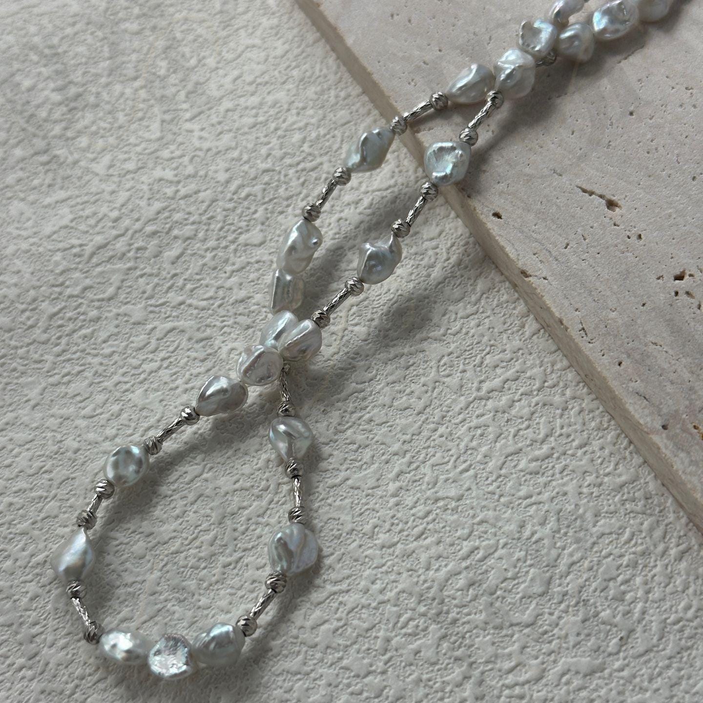✔ Handmade to Order: Each necklace is carefully hand-strung to ensure a one-of-a-kind arrangement of silver and pearls